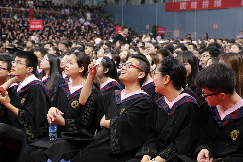 齐恩平代表校学位评定委员会宣读2017届毕业生毕业及授予学位的决定,共有4498名本科生和419名研究生顺利毕业。赴西藏大学任教的马克思主义学院研究生甄菲菲和考取上海交通大学硕士研究生的机械工程学院本科生高子彦代表2017届毕业生发言,感谢学校的悉心培养,感恩老师的辛勤付出,畅谈了对实现未来美好生活的信心和决心。