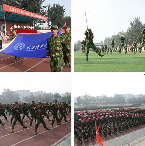 由1200名学生组成的15个方队进行分列式表演,他们精神抖擞、口号嘹亮、军容严整地走过检阅台。由800名学生组成的手语操方队,依次摆出“笃学、弘毅、明德、济世”、“我爱天商”等字样。擒敌拳、匕首操、军体拳、棍术操表演精彩纷呈,充分展现了为期两周的军训成果。