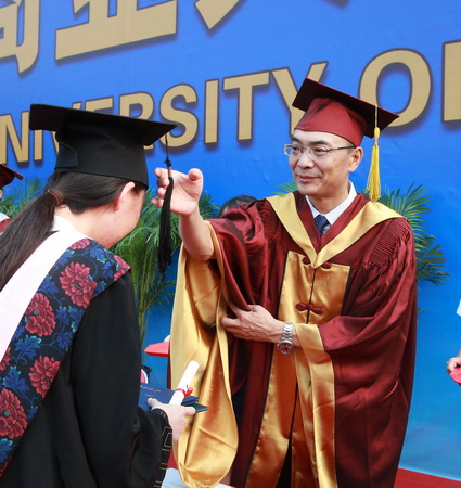 副校长邱立成为毕业生颁发毕业证书、学位证书