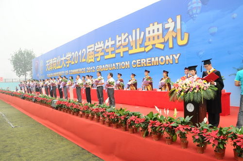 副校长葛宝臻为2012届毕业生颁发毕业证学位证并拨流苏