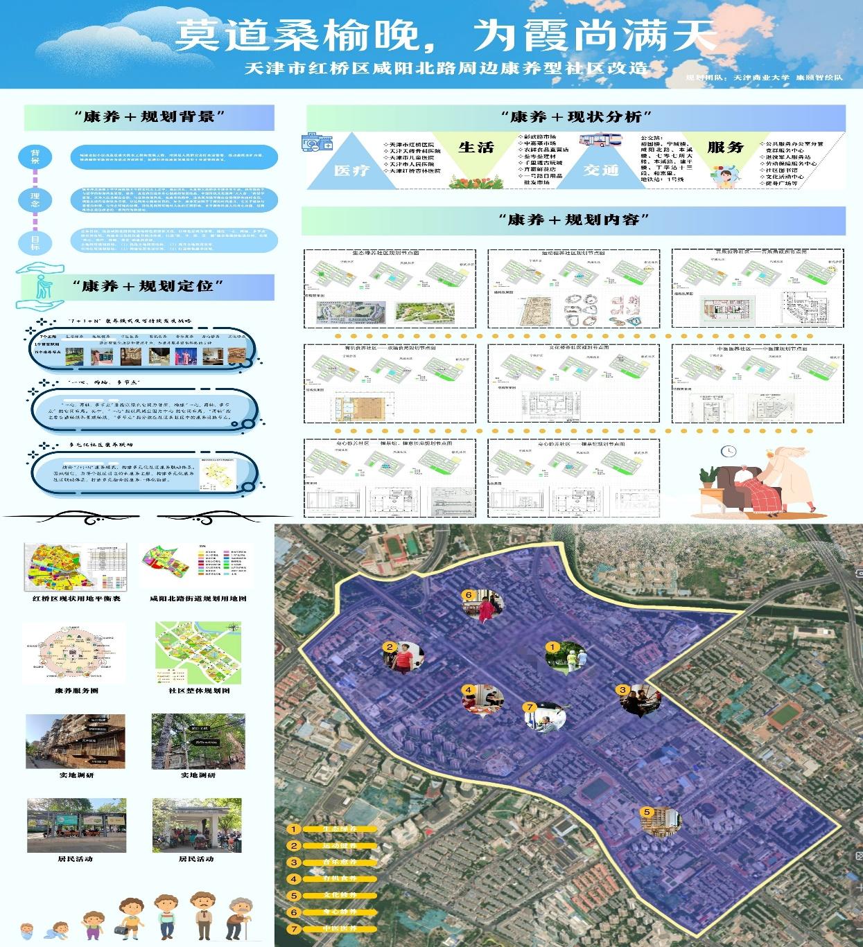 8月25日,“博地源杯”第七届全国大学生国土空间规划技能大赛暨国土空间治理能力促进高质量发展高端论坛在南京市河海大学落幕。冰球官网公共管理学院土地资源管理系2022级本科生张竞帆、申采鑫、鲁楠、达志真共同完成作品《莫道桑榆晚,为霞尚满天——天津市红桥区咸阳北路周边康养型社区改造》(指导教师:席枫、孙艺、高艳丽)荣获全国总决赛一等奖。