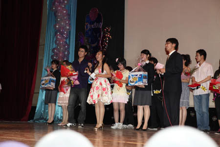 5月18日晚,“声动天商”——首届校园 DJ 嘉年华决赛在科学会堂举行。校党委宣传部副部长张克明,广播台指导教师柴桐、星海艺术团指导教师严慧菁出席活动。天津人民广播电台交通台“ 1068 夜航班”节目主持人王琳、文艺台主持人浩然、慕容应邀参加活动并与校团委指导教师和校广播台高年级播音共同担任评委。当晚,10 位入围决赛的选手经过情景 DJ 秀、才艺展示和现场配音三个环节的激烈角逐,最终来自机械工程学院机械设计专业 07 级学生李然获得冠军。特别是三位电台主持人的现场点评和精彩示范把现场气氛推向高潮。