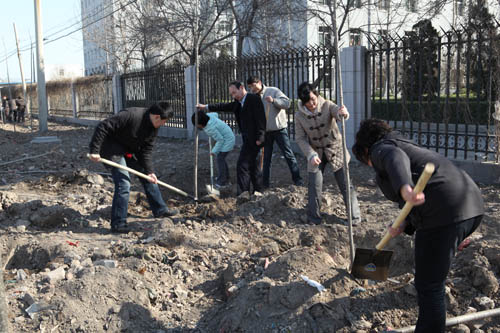 4月1日、2 日、6 日、7 日下午,总务处、学生处、团委共组织1500 名学生代表、学生党员、学生干部、校团委志愿者,在校园南区、西区共植树3500 棵。校党委副书记杨万义、副校长马三津亲临植树现场和学生们一起参加了植树劳动。各学院党总支书记、副书记、辅导员,总务处有关领导也一同参加了植树活动。与此同时,校党委机关分党委和后勤分党委组织70 名机关和后勤有关部门教工党员,4月1日上午在校园西区进行了植树活动。