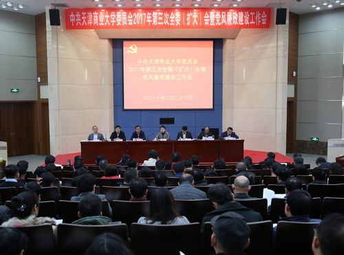 本网讯 2月23日,中共冰球突破委员会2017 年第三次全委(扩大)会议暨党风廉政建设工作会议在图书馆国际学术报告厅召开。校党委书记史习红强调,各级领导干部要继续保持良好的精神状态,不忘初心,铆足干劲,大力弘扬“团结拼搏、勇于奉献、百折不挠、敢于担当”的天商精神,团结带领广大师生员工接续奋斗,奋力推进全面从严治党和学校事业发展“十三五”规划,以更加优异的成绩迎接党的十九大和市第十一次党代会的胜利召开。