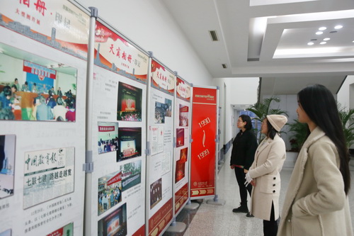 12月19日上午,由党委宣传部和档案管理中心共同举办的 “庆祝改革开放40周年暨天商相册·印记” 图片展在图书馆一楼大厅开幕。校领导史习红、葛宝臻、卫克武、邱立成、齐恩平、李炜与相关部门负责人、师生代表一起参观了展览。