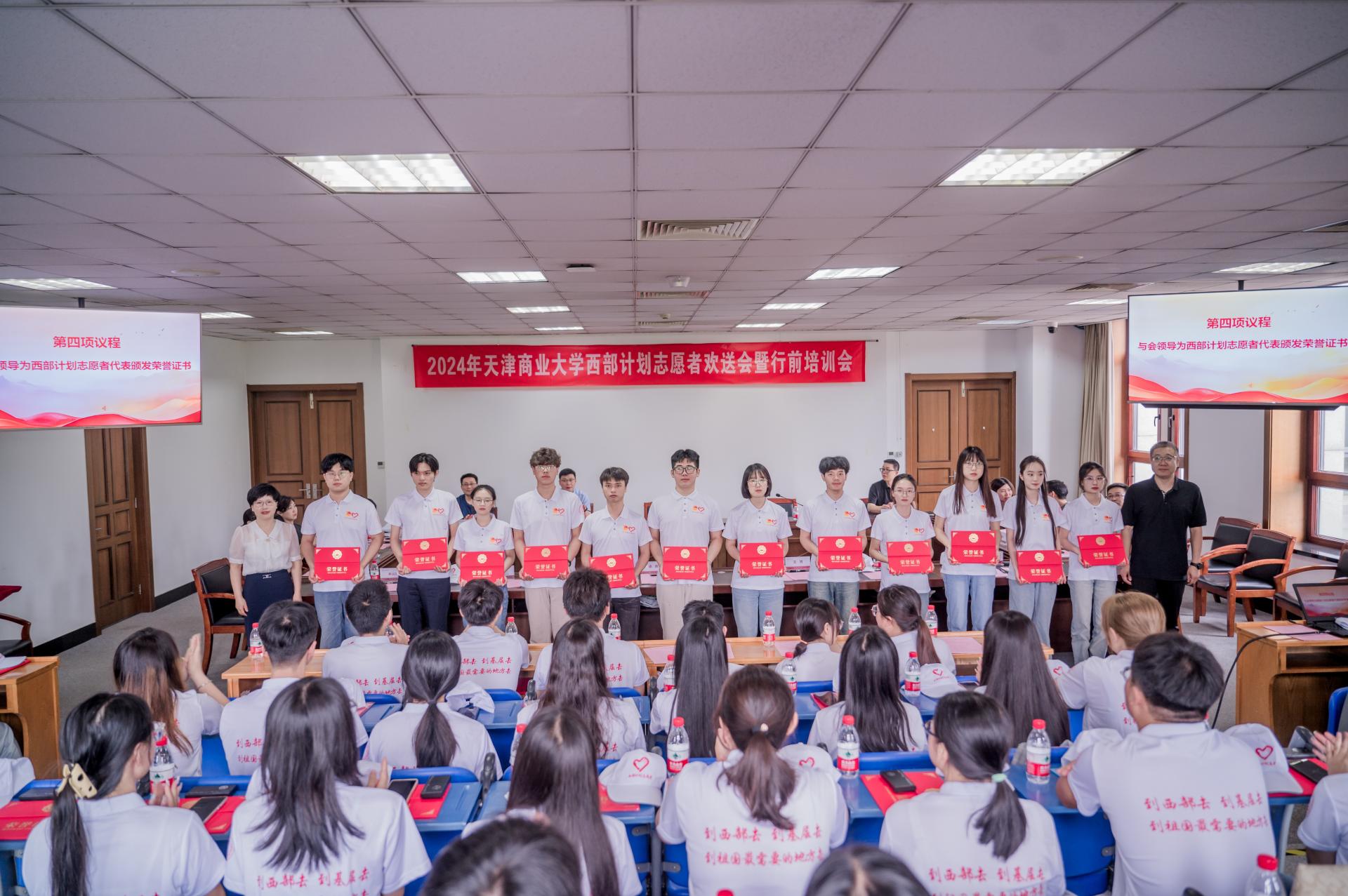 会上,与会领导为西部计划志愿者代表颁发优秀毕业生荣誉证书,全体2024年西部计划志愿者庄严宣誓。